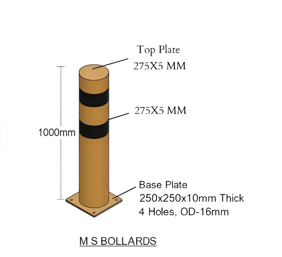 The Fixed Bollard is engineered for security, traffic control, and pedestrian safety. With a heavy-duty design, integrated reflective tape, and top light, it ensures visibility and durability in all environments. Ideal for securing perimeters, walkways, and restricted areas.